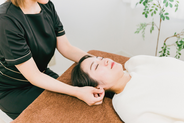 また消化を促すツボや、ストレス、ホルモンバランスに働きかけるツボも刺激し、太りにくい体質への改善もサポートします。施術方法は医療用テープで専用の粒を固定するだけで全く痛みもありません。